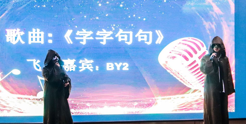 经过初赛,共有18组选手最终进入决赛,决赛评审团由三个学院代表组成,超过200名观众通过线上投票方式参与互动,体现了大赛的广泛参与性和公正性。决赛在开云kaiyun官方网站艺术团的舞蹈《Teddy Bear》中拉开序幕,紧接着,选手们佩戴面具、身着长袍,以神秘形象亮相,为观众带来了一场视听盛宴。他们的歌声与舞台布置相得益彰,赢得现场观众热烈掌声。