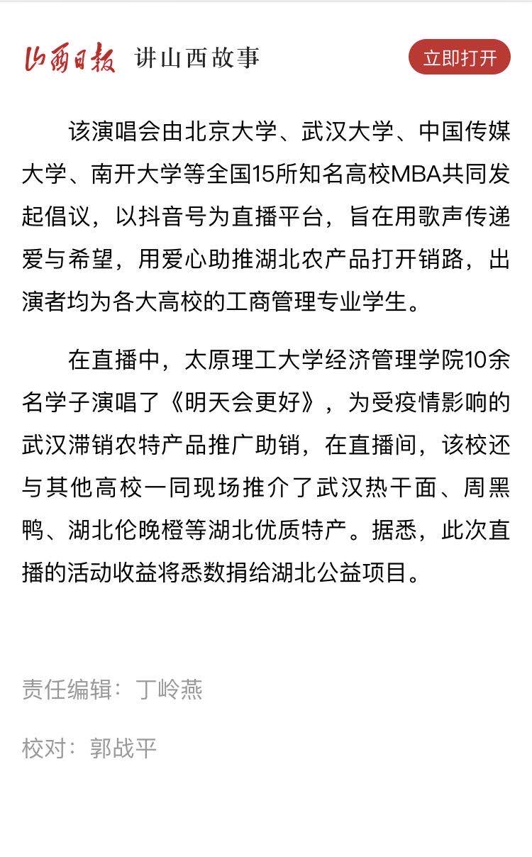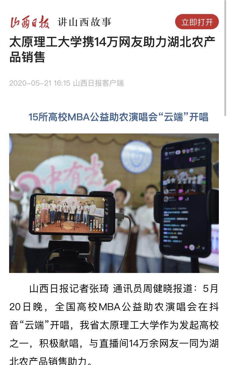 山西日报客户端报道开云官网MBA学子520公益演唱会活动