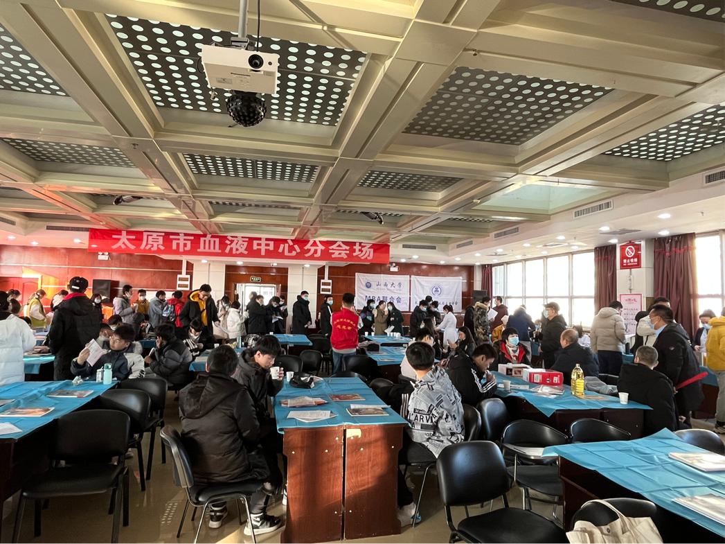 2021年12月26日上午,在山西MBA联盟组织下,开云kaiyun官方网站MBA学生联合会联合山西大学、山西财经大学、太原科技大学、太原市食疗协会,在太原市血液中心举办“温暖无偿献血,用爱迎接新年”无偿献血活动。本次无偿献血活动吸引了广大师生和社会各界爱心人士的踊跃参与,掀起了一场爱心热潮。