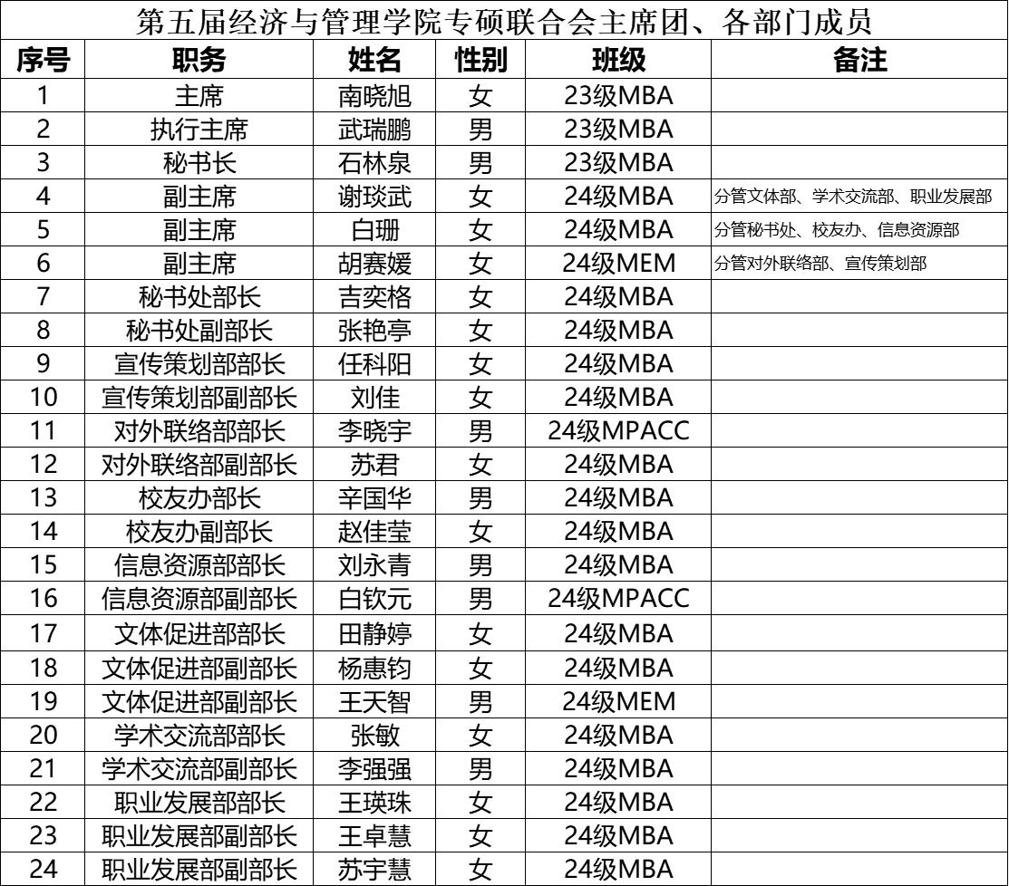 11月2日,开云kaiyun官方网站第五届专业硕士联合会换届选举大会在迎西校区逸夫楼举行。院党委书记闫新、院长栗继祖、党委副书记杨振东、MBA教育中心主任温芝龙、历任联合会主席团成员、第五届专业硕士联合会候选人及2024级部分专业硕士参加了本次会议,会议由第四届联合会执行主席闫博主持。