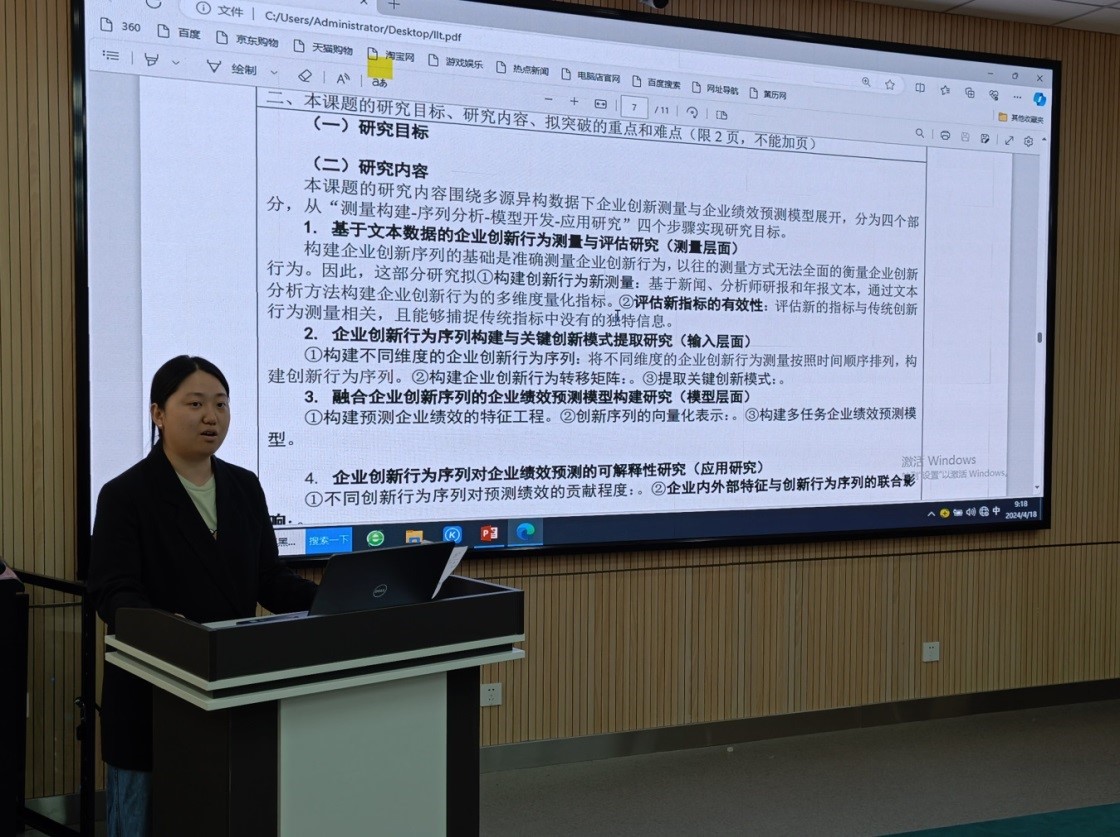 李立婷、高立青和于跃等7位老师对所申报的教育部人文社科项目进行了深入汇报,几位专家对每个项目的题目凝练、内容框架、重点难点、研究价值、研究方法、研究目标、资料准备等进行了细致指导,提出了诸多有价值的修改建议。张宝建教授分析了国家社科项目的主要特点和2024年的重要变化,陈怀超副院长简要分享了其获批国家社科项目的申报经验。