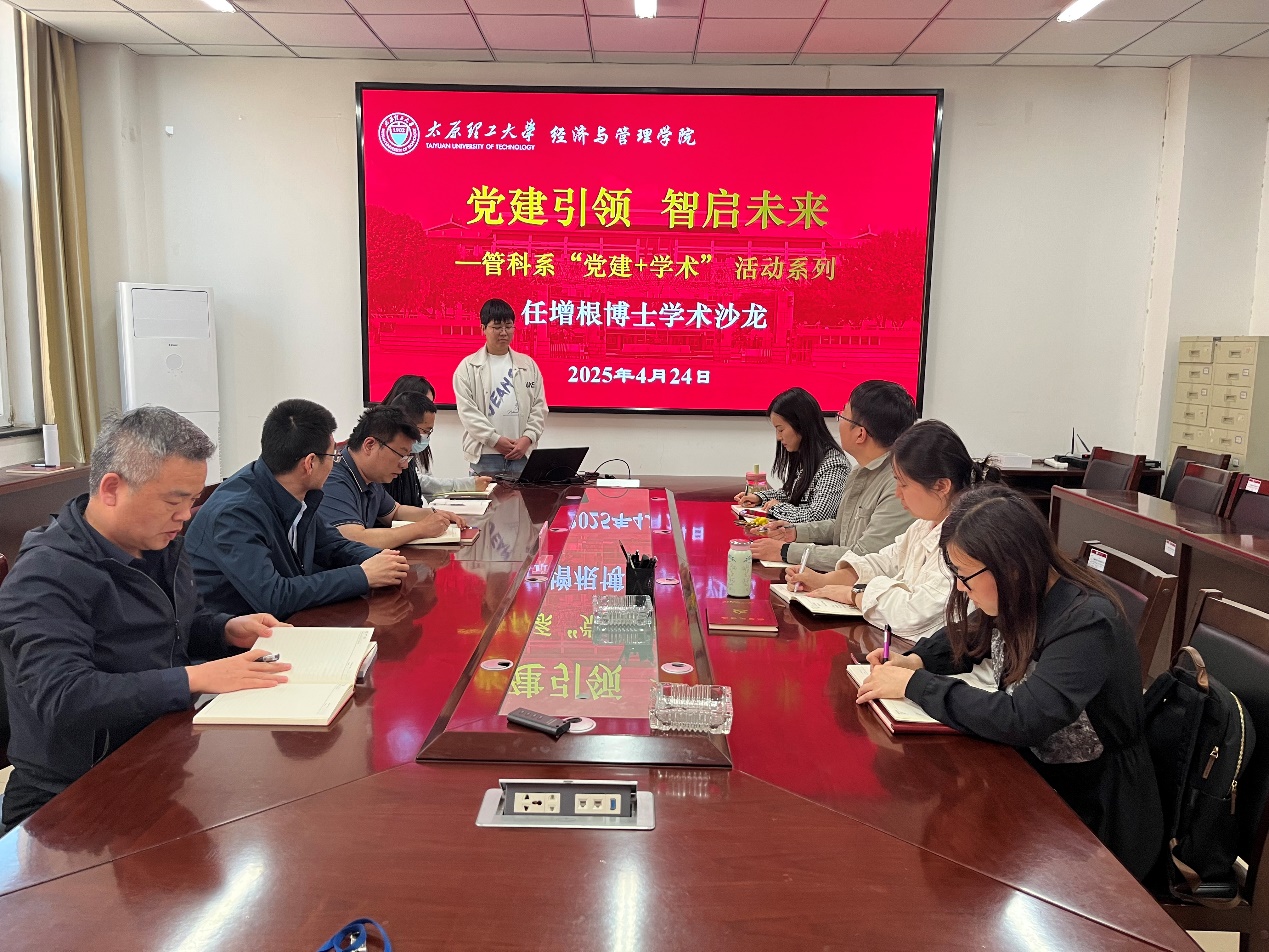 为促进学术交流、激发创新思维,管科系举行“党建引领 智启未来——党建+学术活动系列”。4月24日,任增根博士在学院226会议室,作了题为“基于多模式测量的车载代理设计特征对用户体验和驾驶绩效的影响研究”的学术分享,学院副院长王天日教授和管科系10余名教师参加了本次活动,活动由管科系副主任何学松副教授主持。