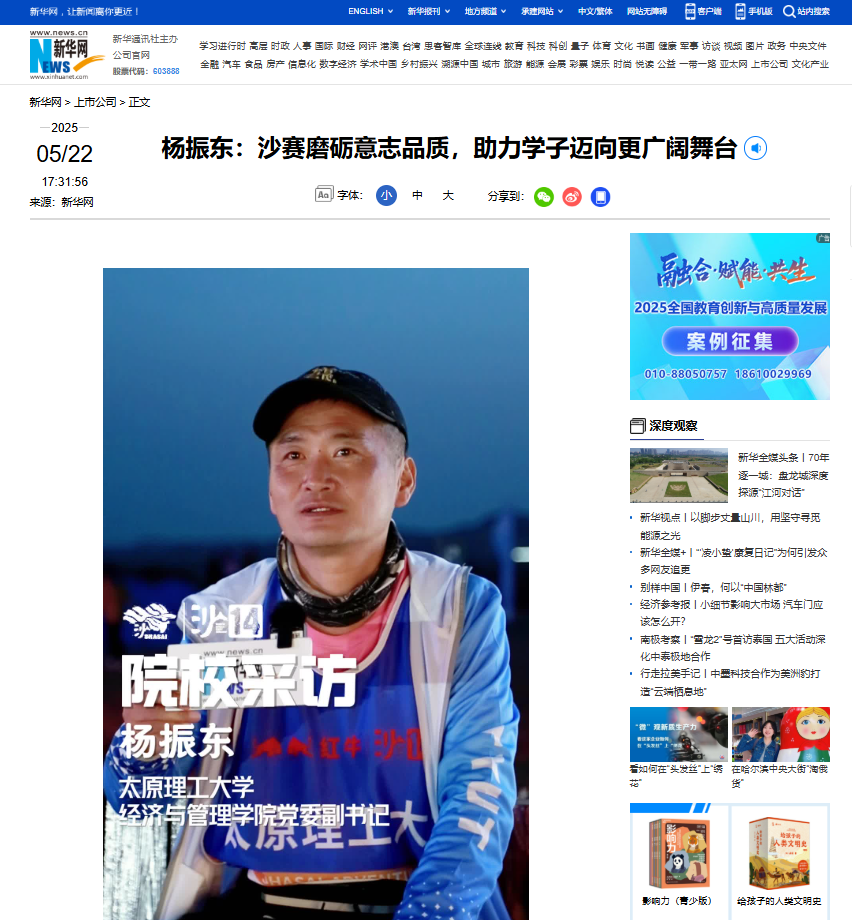 近日,开云kaiyun官方网站党委副书记杨振东作为C组队员,首次带队参加第十四届商学院沙漠挑战赛(简称“沙赛”)。他在活动中表示,沙赛为商学院学子提供了宝贵的交流平台,具有高度的融合性。通过沙漠中数日的风餐露宿、跋山涉水,学子们不仅磨练了意志品质,更在多维度体验中感受到赛事的独特影响力与魅力。