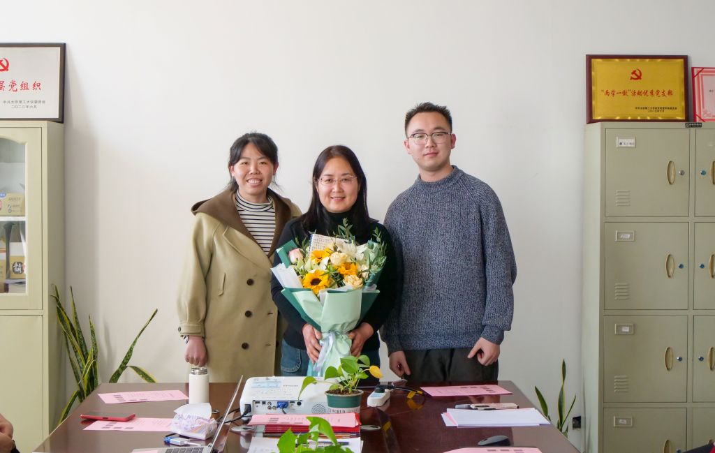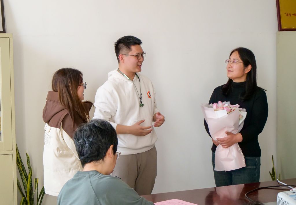 三是“实践动真情”。会议设置了2个师德师风实践环节,分别是“险与坚韧”和“爱与传承”。在“险与坚韧”环节,老师们视频连线了因为遭遇交通事故在家康复的马丁老师,大家为马丁老师在遭遇意外危险后积极面对、以顽强意志努力恢复的坚韧精神所感动,也为马丁老师送上了温馨的祝福。在“爱与传承”环节,大家为即将荣退的宋丽芝老师送去了感谢和祝福。王蕾老师和靳立伟老师代表教师为宋老师送上了鲜花,学生代表刘俊麟、鲍欣也代表经贸学子为宋老师送上鲜花和祝福。