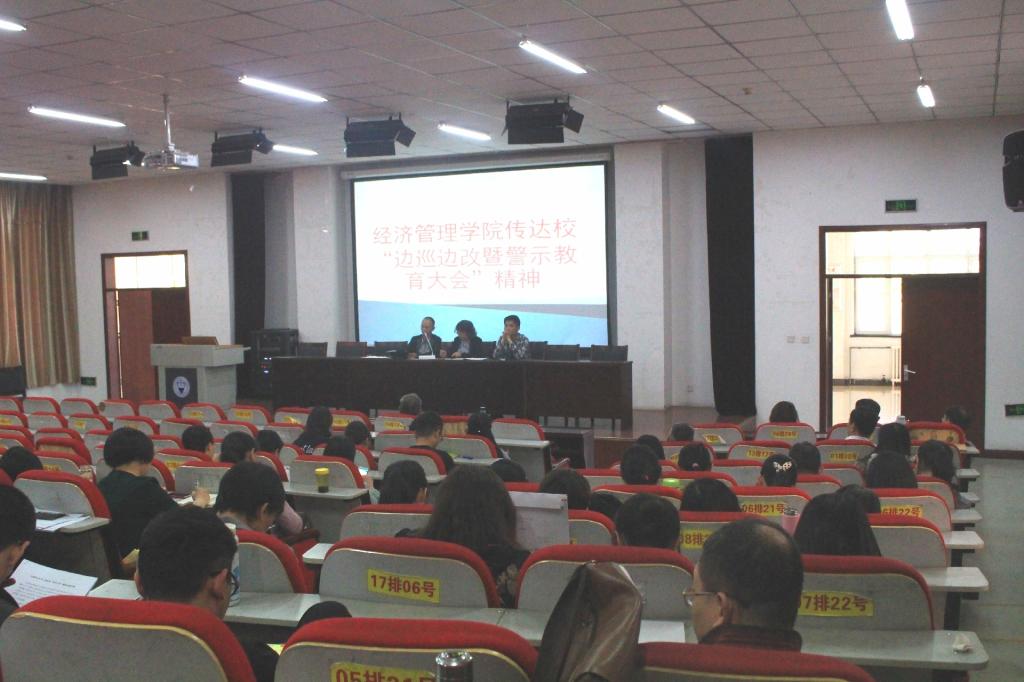 5月21日下午,经济管理学院在经管楼二层报告厅召开全院教职工大会,传达学校边巡边改暨警示教育大会精神,全体院领导和教职工参加大会,大会由院党委书记李玮主持。 会上,李玮传达了学校边巡边改暨警示教育大会精神,并就李光明组长和吴玉程书记的重要讲话精神做了专门解读,对于与教职工密切相关的工作纪律、教学责任等方面做了着重强调。她表示,希望广大教职工从自身做起,严格要求自己,认真履职尽责,树立起教书育人的...