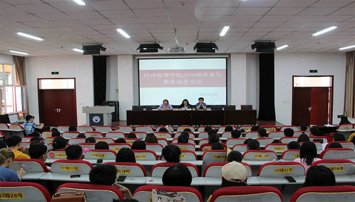 6月6日上午,经济管理学院在学院报告厅召开2019届毕业生教育动员大会,院党委书记李玮、党委副书记杨振东出席大会,2019届全体毕业生按专业划分为三个场次参加大会,大会由院学工办主任梁泽莹主持。杨振东作毕业动员,他对全体毕业生提出三点要求,一是文明离校,为学弟学妹们树立一个良好的榜样,将文明之风传承下去;二是安全离校,严格遵守学校相关规定,避免各种伤害事件发生;三是快乐离校,正确处理好毕业季的各种人际...
