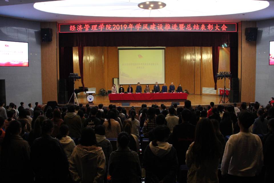 11月5日中午,经济管理学院在明向校区学生活动中心举行2019年学风建设推进暨总结表彰大会,学院全体院领导、各系主任、全体辅导员以及2018级全体学生参加大会。
